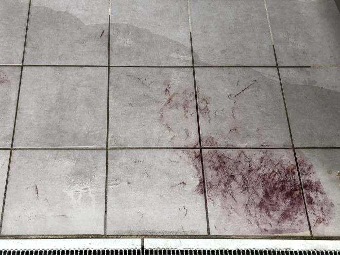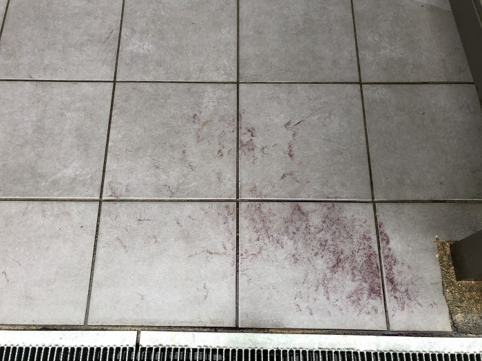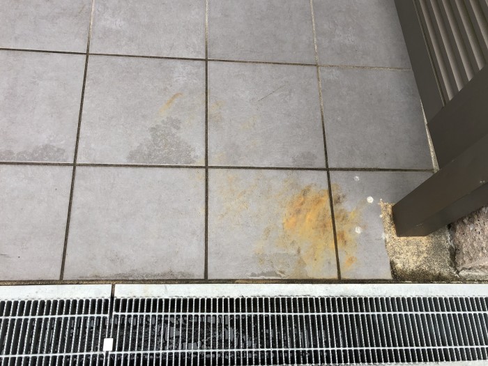 本日は池田市のマンションオーナー様からのご依頼でタイルのサビとりをしました。