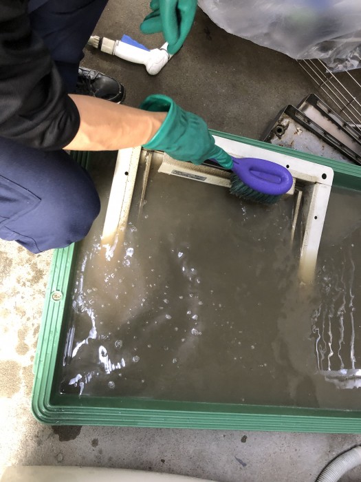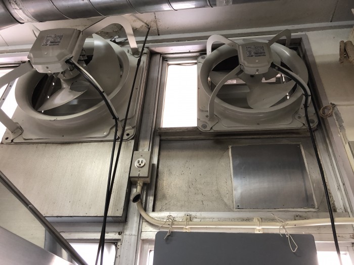 本日は小学校の給食室のフード、換気扇清掃でした。